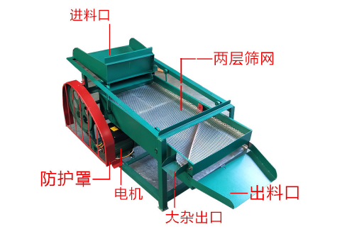 進(jìn)行初次篩分層篩分,以比較大的網(wǎng)孔,作為大塊雜質(zhì)篩分,如玉米芯,黃豆片,花生皮等等。大的雜質(zhì)會留在層篩網(wǎng)中,通過電機(jī)來回篩選抖動,把雜物振到雜物出料口,需要篩分的物料會漏到下層篩網(wǎng)中,進(jìn)行下一層篩網(wǎng) 層篩網(wǎng),網(wǎng)目比較小,也就是糧食機(jī)的小塊雜質(zhì),篩網(wǎng)網(wǎng)孔比需要篩分的物料大。