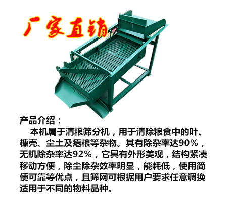 該精選篩為二層篩網(wǎng),先經(jīng)過(guò)進(jìn)料口處風(fēng)機(jī)抽風(fēng),直接抽走重量輕的雜葉或麥秸稈,上層篩的初次篩分再把大雜清理過(guò),好的糧食(種子)直接落到下層篩網(wǎng)上,下層篩網(wǎng)會(huì)把糧食(種子)中的小雜.小石子.有缺陷的糧食(種子)直接漏掉,完好的糧食(種子)會(huì)從出料口篩分出來(lái)。該小型清糧機(jī)解決了揚(yáng)場(chǎng)機(jī)的功能單一,不能有效去除石子.土塊的缺陷,更能為清理.凈選糧食(種子)帶來(lái)滿意的效果。該機(jī)有占地小,移動(dòng)方便,便以維修,除塵除雜效率明顯,能耗低,使用簡(jiǎn)便等優(yōu)點(diǎn)。