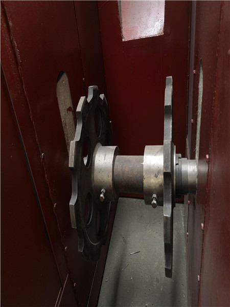 上部裝置---安裝有軌道(雙排鏈)、逆止器、卸料口裝有防回料橡膠板。