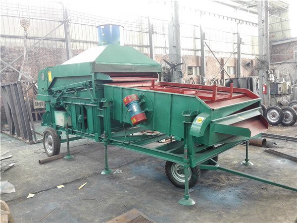 本機(jī)由機(jī)架及運(yùn)輸輪,傳動(dòng)部分,主風(fēng)機(jī)、重力分離臺(tái)、吸風(fēng)機(jī)、吸風(fēng)道、篩箱等組成,移動(dòng)靈活,更換篩板方便、性能良好等特點(diǎn)。