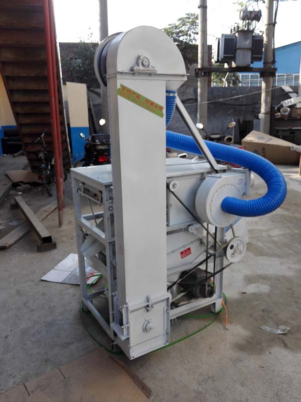 本機(jī)為三層篩網(wǎng),先經(jīng)過(guò)進(jìn)料口處風(fēng)機(jī)抽風(fēng),直接抽走重量輕的雜葉或麥秸稈,上層篩的初次篩分再把大雜清理過(guò),好的糧食(種子)直接落到下層篩網(wǎng)上,下層篩網(wǎng)會(huì)把糧食(種子)中的小雜.小石子.有缺陷的糧食(種子)直接漏掉,完好的糧食(種子)會(huì)從出料口篩分出來(lái)。該小型清糧機(jī)解決了揚(yáng)場(chǎng)機(jī)的功能單一,不能有效去除石子.土塊的缺陷,更能為清理、凈選糧食(種子)帶來(lái)滿意的效果。該機(jī)有占地小,移動(dòng)方便,便以維修,除塵除雜效率明顯,能耗低,使用簡(jiǎn)便等優(yōu)點(diǎn)。
