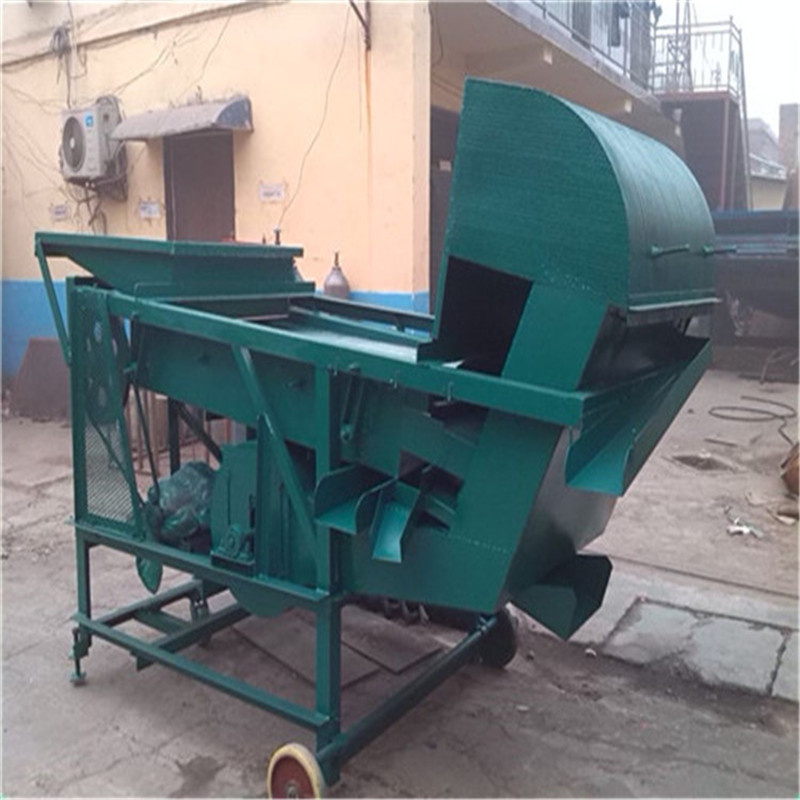 該清選機(jī)含有三層篩網(wǎng),工作時(shí)先經(jīng)過(guò)第一層篩, 把原糧中比所需篩選物大的的雜質(zhì)、葉子、泥塊等雜物分離出來(lái),再經(jīng)過(guò)第二層篩網(wǎng)經(jīng)好糧分離開(kāi),剩下第三層篩網(wǎng)所篩物料即是比好糧小或碎的一些其他雜物。注:再好糧篩出過(guò)程中,經(jīng)過(guò)機(jī)器本身自帶風(fēng)機(jī)風(fēng)選出比較輕的灰塵雜物,好糧由前端的出來(lái)口排出。