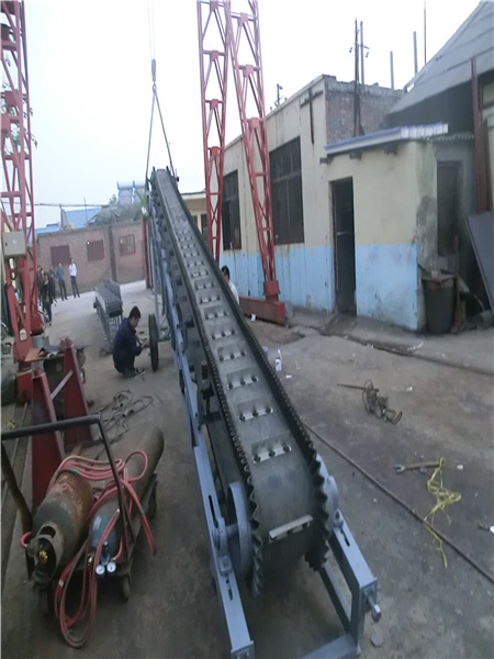 擋邊帶式輸送機(jī)其結(jié)構(gòu)是在平行橡膠運(yùn)輸帶兩側(cè)黏上可自由伸縮的橡膠波形式的裙邊,在裙邊之間又粘有一定強(qiáng)度和彈性的橫隔板組成匣型斗,使物料在斗中進(jìn)行連續(xù)輸送。擋邊帶式輸送機(jī)可廣泛用于煤炭、糧食、建材、化工、水電、和冶金等部門(mén),在環(huán)境濕度為19°-+40°范圍內(nèi),輸送堆積比重為0.5-2.5t/m3的各種散裝物料。對(duì)于輸送有特殊要求的,如:高溫、酸、堿、油類物質(zhì)或有機(jī)溶劑等成分物料,采用特殊的擋邊輸送帶。