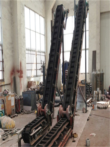 擋邊帶式輸送機其結構是在平行橡膠運輸帶兩側黏上可自由伸縮的橡膠波形式的裙邊,在裙邊之間又粘有一定強度和彈性的橫隔板組成匣型斗,使物料在斗中進行連續(xù)輸送。擋邊帶式輸送機可廣泛用于煤炭、糧食、建材、化工、水電、和冶金等部門,在環(huán)境濕度為19°-+40°范圍內,輸送堆積比重為0.5-2.5t/m3的各種散裝物料。對于輸送有特殊要求的,如:高溫、酸、堿、油類物質或有機溶劑等成分物料,采用特殊的擋邊輸送帶。