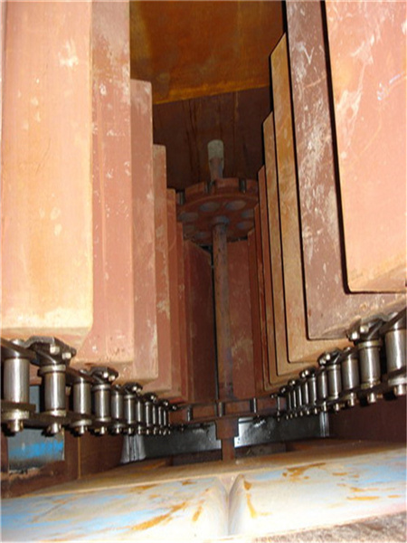 1.上部裝置:安裝有軌道(雙排道),防止鏈條擺動,逆止器,防止料斗回轉(zhuǎn),物料阻滿下部機殼,卸料口裝有橡膠板防止回料。