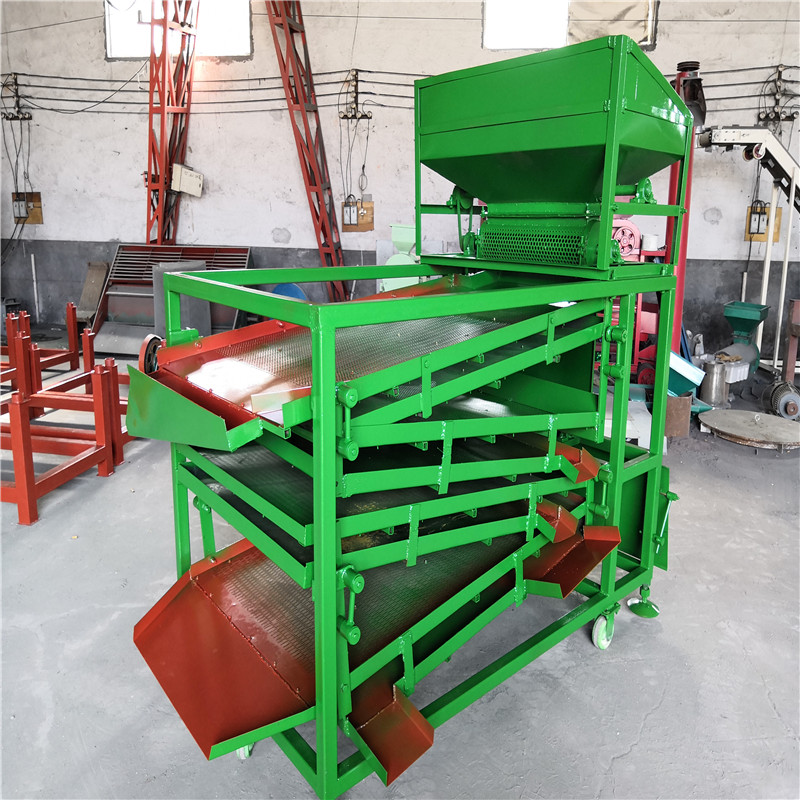 家用花椒除雜篩是利用打碎分離+篩選的方式進行花椒打把脫粒篩選處理,原枝花椒放進進料斗后把花椒把打下來,花椒籽從殼里打出來,通過下料器落到篩面上篩選,一層篩選出來的梅花椒和大的花椒枝葉----二層是花椒籽,會落到風機口進行二次風選----三層進行復試篩選----四層是成品椒殼,可以直接打包,我們都知道花椒篩分機都是上下篩,下篩篩出來的花椒枝葉,以前十幾個人干的工作,現(xiàn)在只需一人就能完成,篩選凈度高,產(chǎn)量也大。