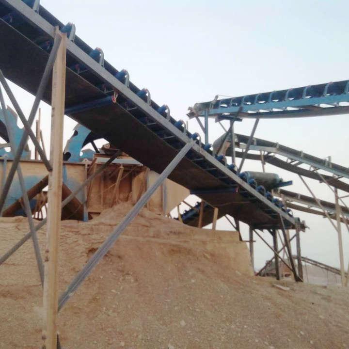 主要由機(jī)架、輸送皮帶、皮帶輥筒、張緊裝置、傳動(dòng)裝置等組成。機(jī)身采用優(yōu)質(zhì)鋼板連接而成 ,由前后支腿的高低差形成機(jī)架,平面呈一定角度傾斜。機(jī)架上裝有皮帶輥筒、托輥等,用于帶動(dòng)和支承輸送皮帶。有減速電機(jī)驅(qū)動(dòng)和電動(dòng)滾筒驅(qū)動(dòng)兩種方式。皮帶輸送機(jī)廣泛用于冶金、煤炭、水電、礦山等部門中用來輸送散裝物料或成件的輸送。在設(shè)備生產(chǎn)中廣泛的應(yīng)用在石料生產(chǎn)線的輸送中。